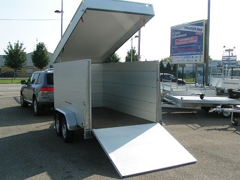 Les remorques GT sont aussi disponibles avec une carrosserie aluminium. Ces remorques carrossées (Fourgons) sont livrables en différentes dimensions. Tous les fourgons sont équipés d’un capot. Leur conception permet de réduire la prise au vent et le capot s’ouvrant sur l’avant vous permet de les charger confortablement. De plus, afin de fixer votre chargement, toutes les remorques-fourgons sont équipées de manilles réglable.