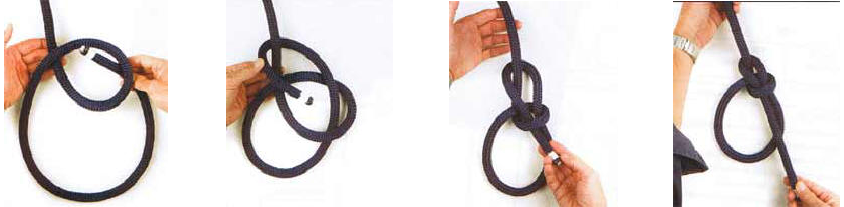 Grâce à ce noeud, vous pouvez former une boucle non coulissante, de la taille que vous souhaitez, au bout d'une corde. La boucle solide résistera à une traction. La boucle se défait en revanche facilement même lorsque le cordage est mouillé.